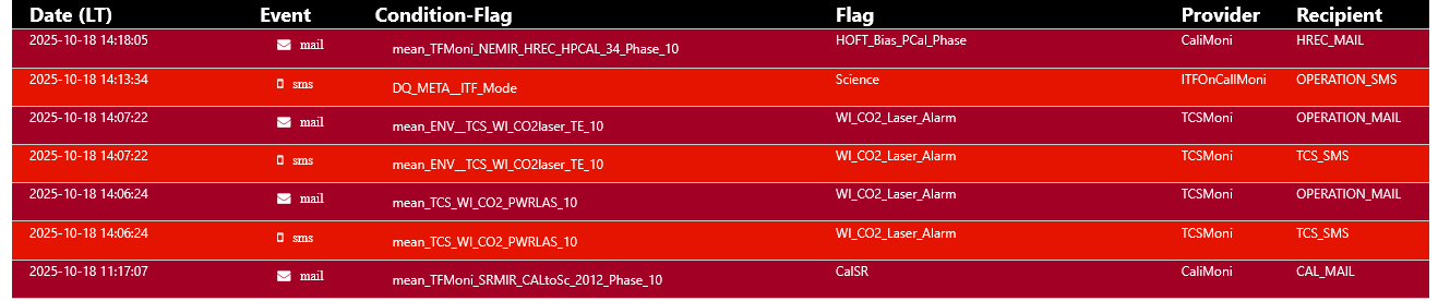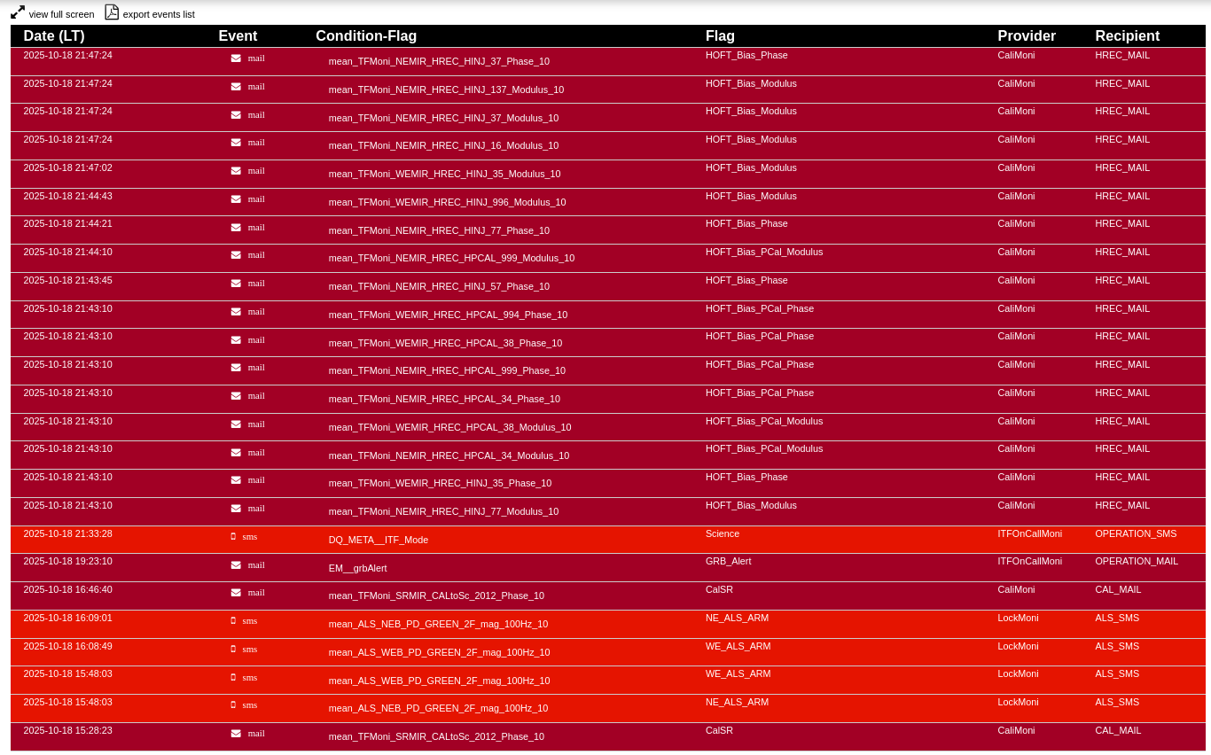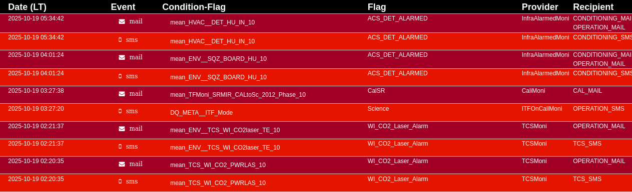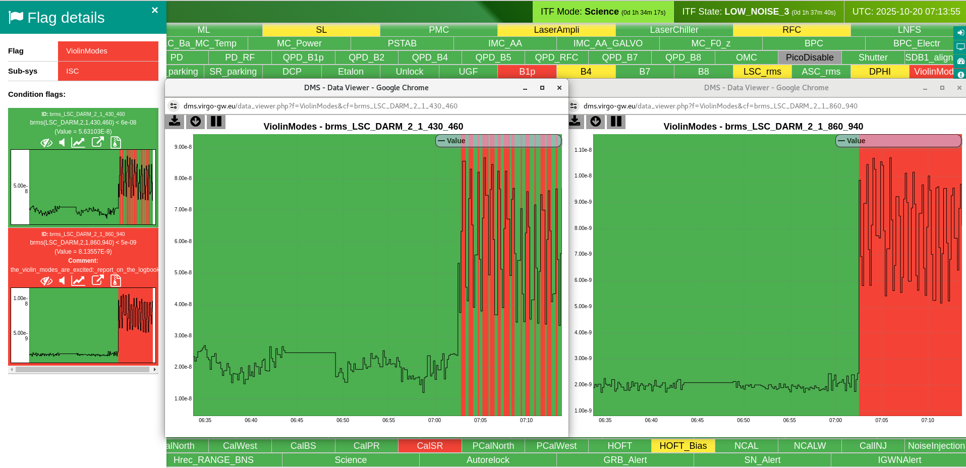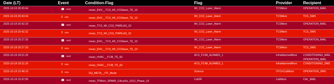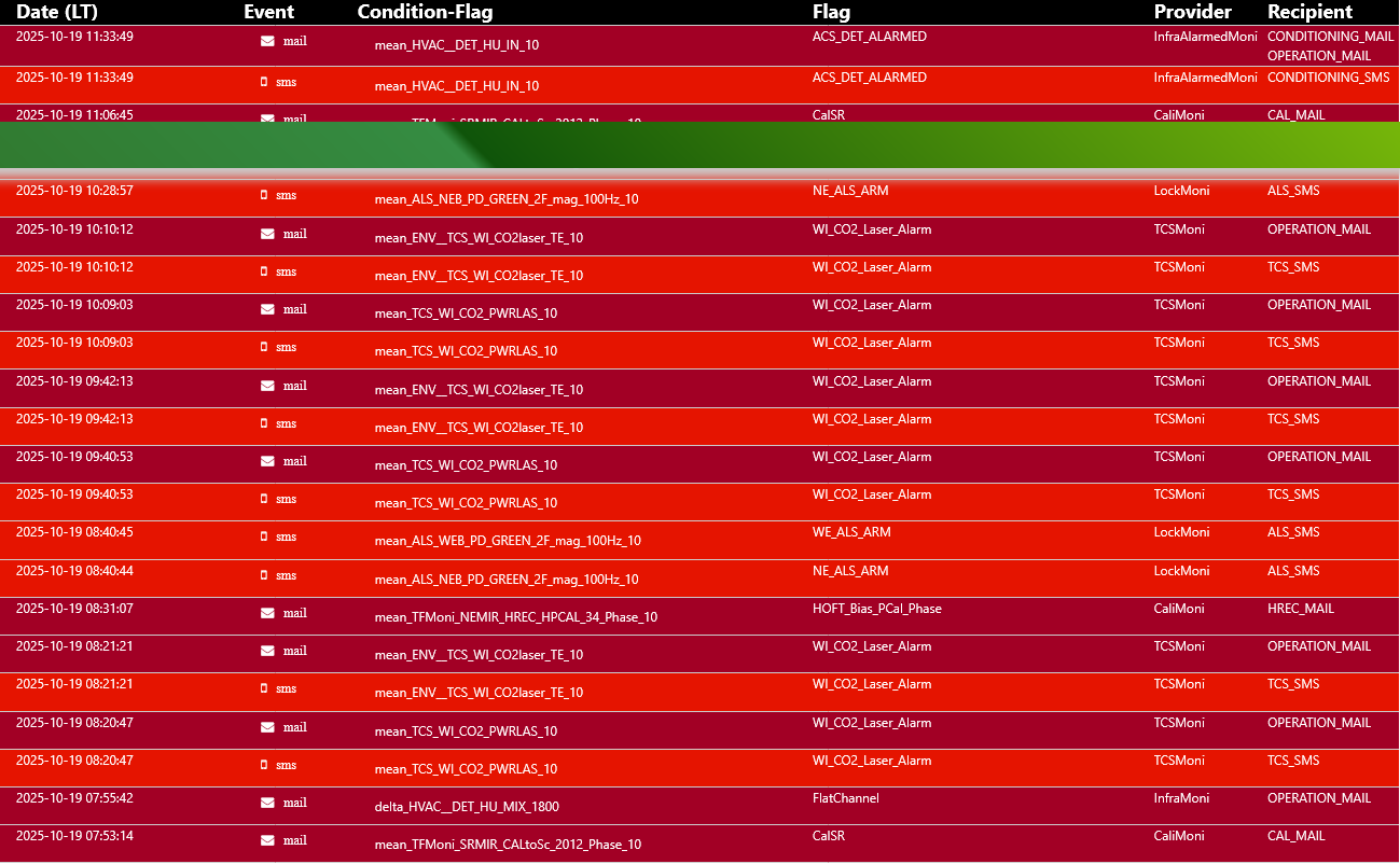 From 16:10 to 16:25 problems with internet connection (EGO Service adviced via mail);