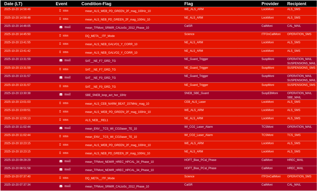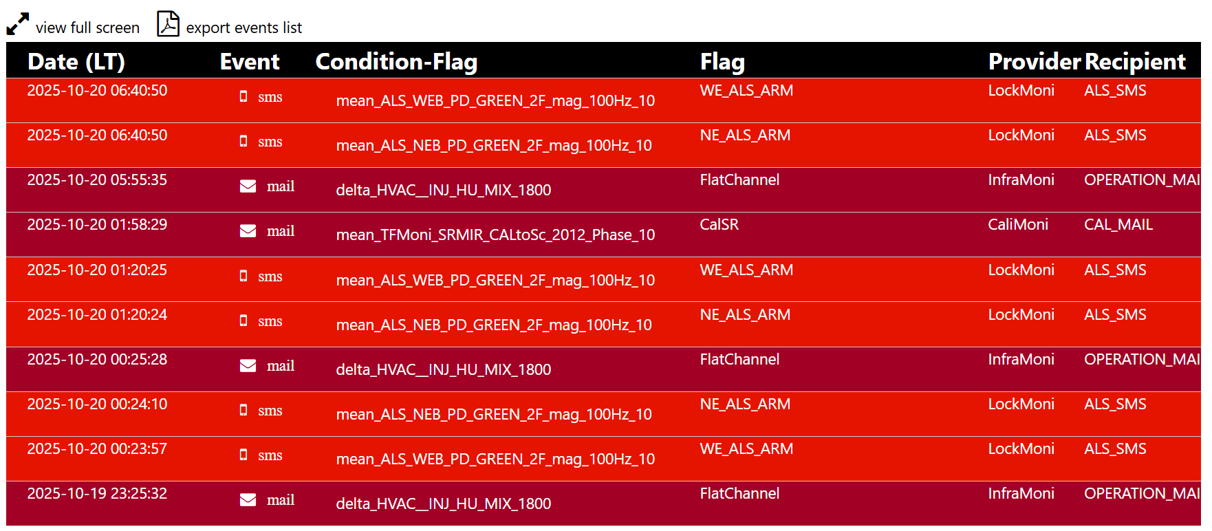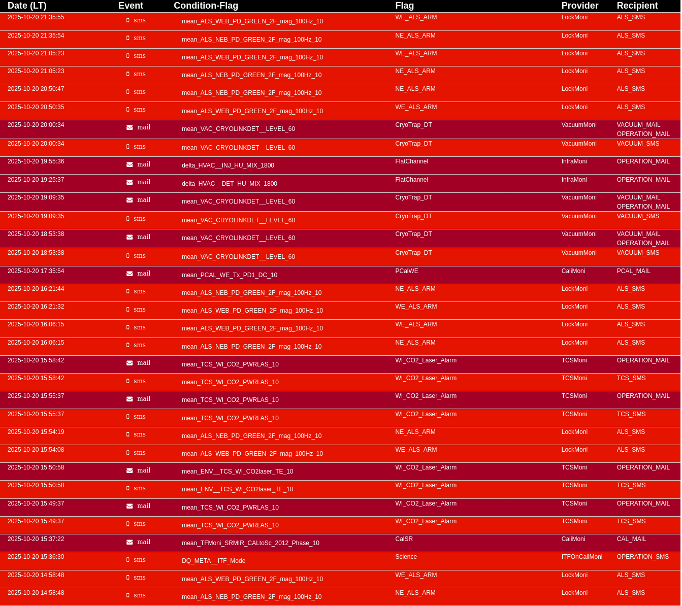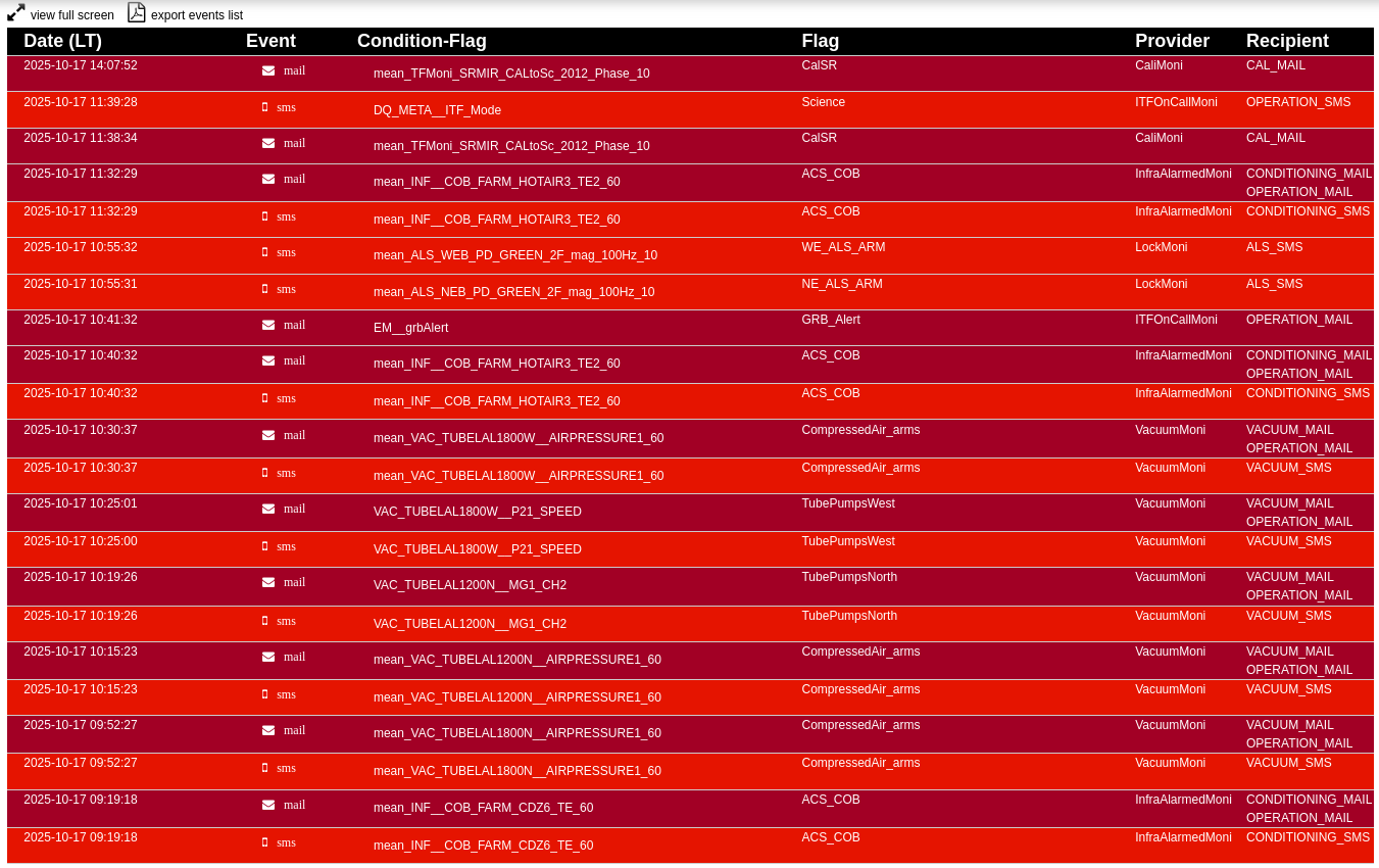 From 16:10 to 16:25 problems with internet connection (EGO Service adviced via mail);
