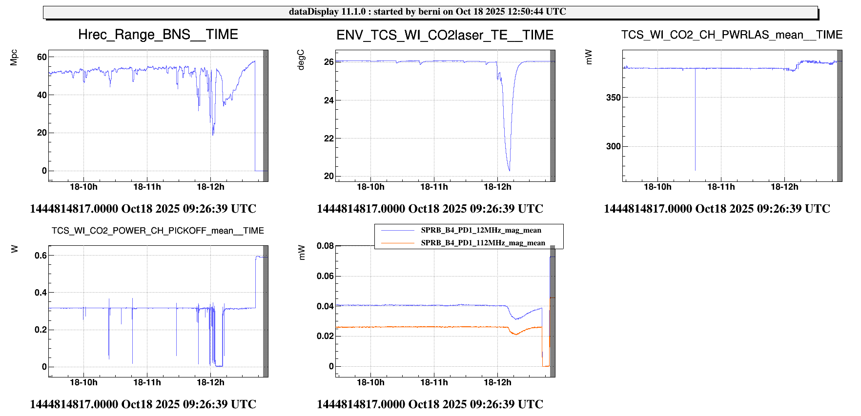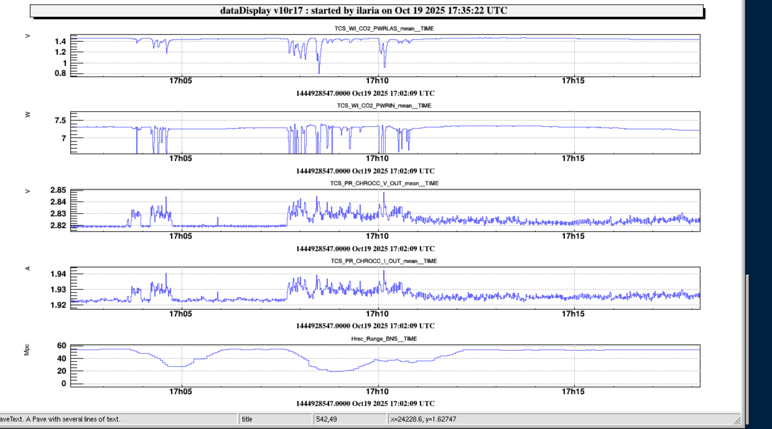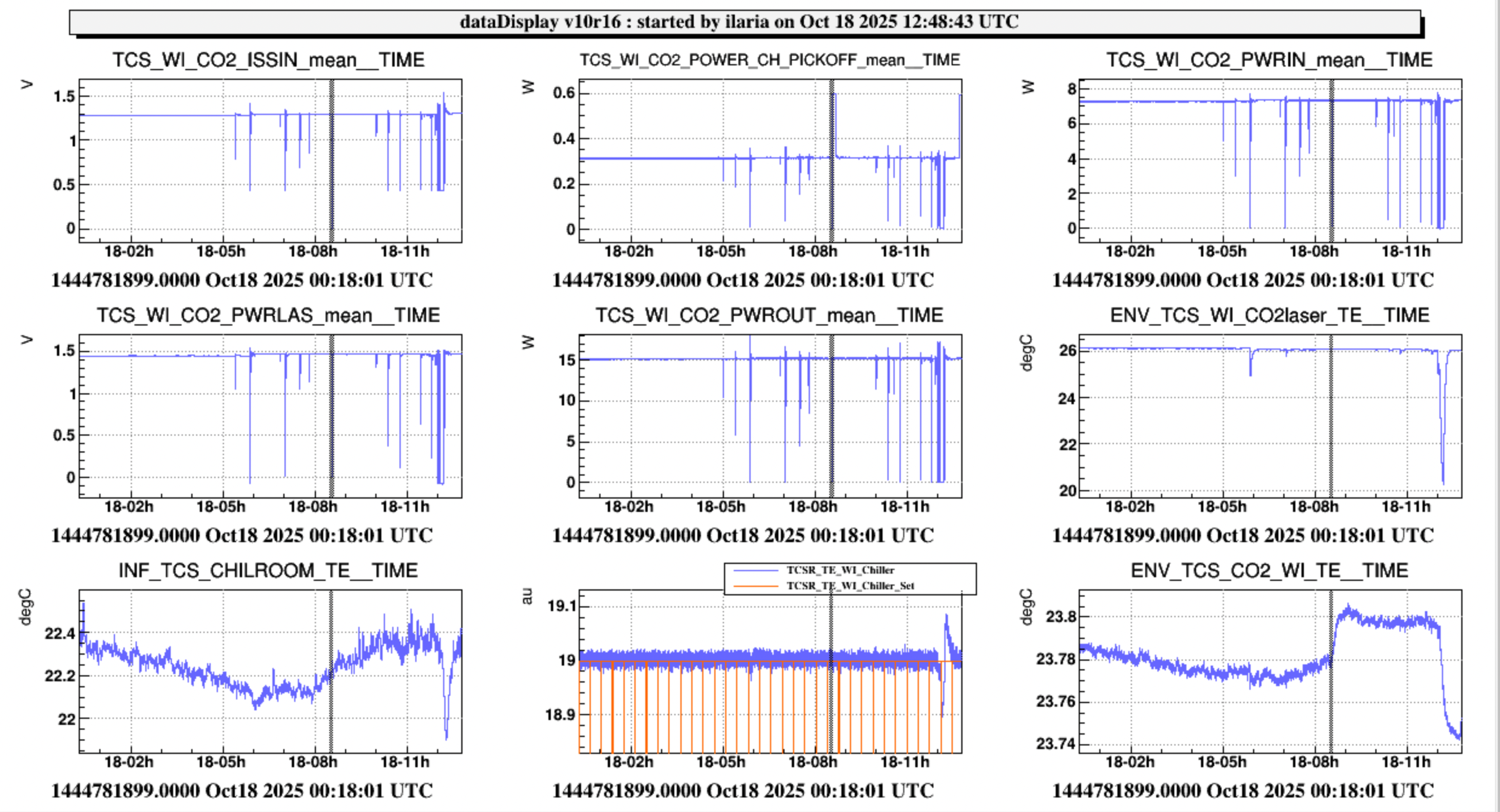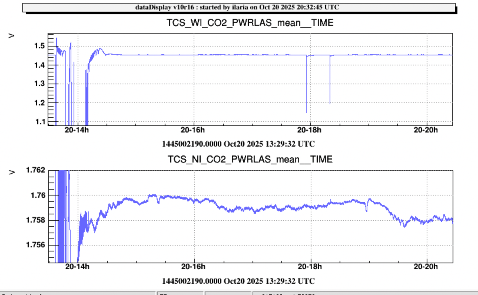 I noitced that the power of the TCS_NI_CO2_POWER_CH_PICKOFF was 0.550 W and I performed weekly TCS power checks, since CH values for WI and NI were not the desired one I contated the TCS oncall (Lumaca D.) which adjusted the powers (add entry when written) for both the NI/WI, activity ended at 18:39;
