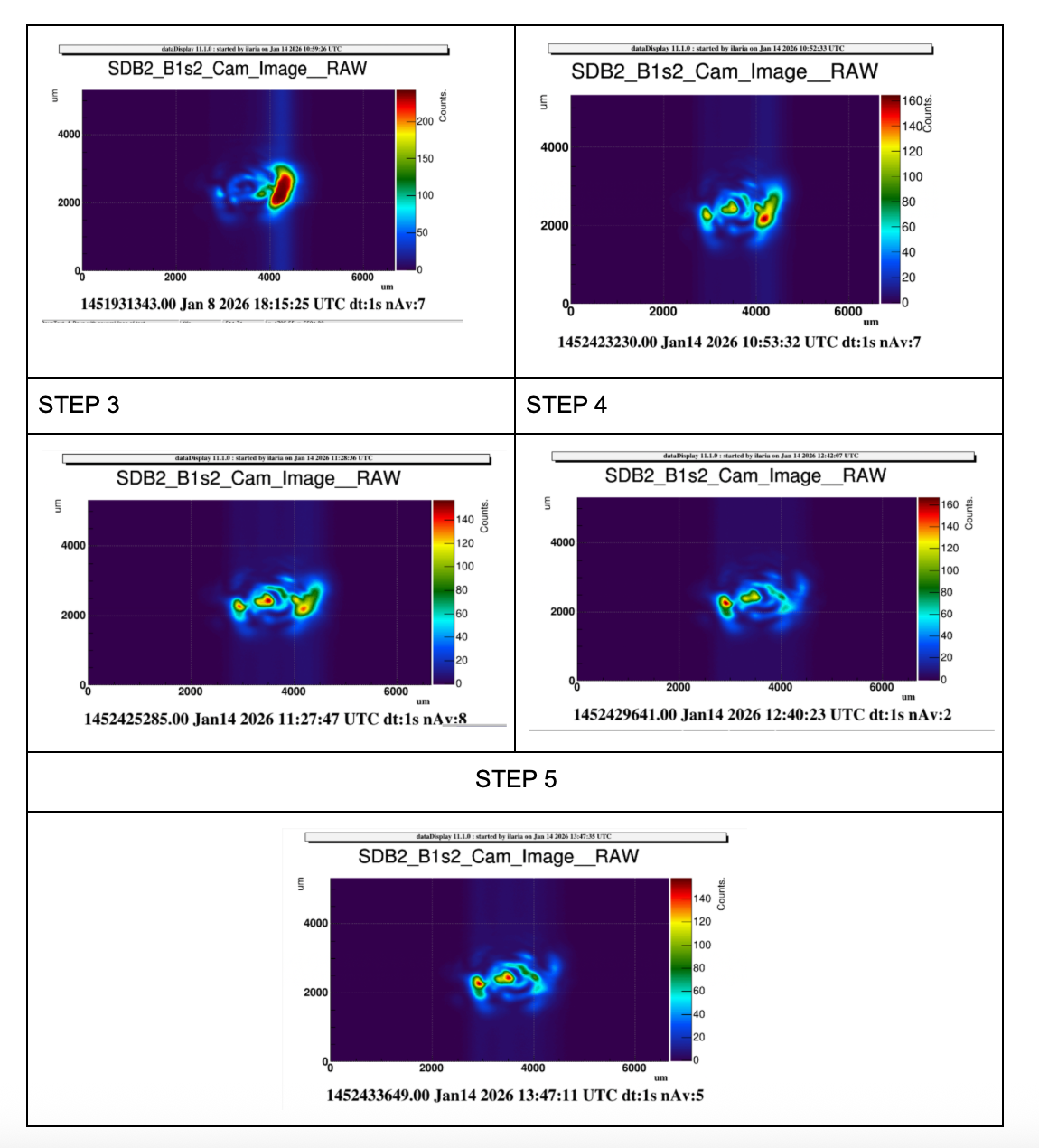 Looking at the B1s camera, we observed that the spot moved to the left side of the camera (see figure 1- STEP 4). Therefore, we reversed the step by half to improve the left-right asimmetry .