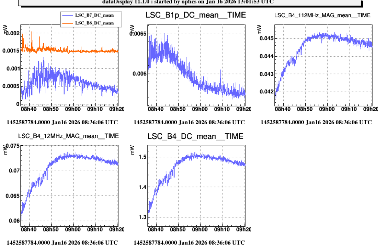 The improvement of the matching is shown in fig 4. Here the measurement is made on the cold interferometer by making the scan of the arms with the green. From 2.4% to 1.3% on the west and from 1.8% to 1.3% on the north.