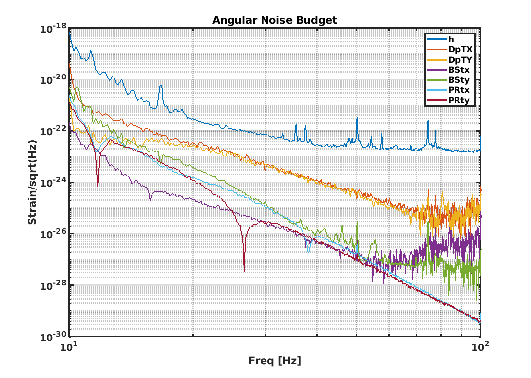 here is reported the partial noise budget of the angular loops using the measurements of last friday jan 16th. Specific injections has been made in order to both measure the coupling and obtain information to calibrate the several error signals. full budget needs to be performed.